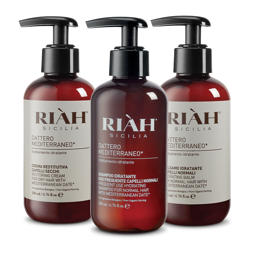 Trattamento ideale per tutti i tipi di capelli, ed in particolare per chi desidera nuova luminosità e morbidezza alla chioma. La corretta idratazione permette infatti di avere capelli sani, forti e lucenti. Il pacchetto propone uno shampoo idratante adatto anche ad uso frequente che deterge delicatamente senza appesantire il capello. Per completare il trattamento poi si può alternare il balsamo idratante per un’azione districante, oppure una crema per un impacco più emolliente e nutriente. Tutti i prodotti contengono olio di dattero mediterraneo, pregiato nutriente estratto dai semi del frutto.